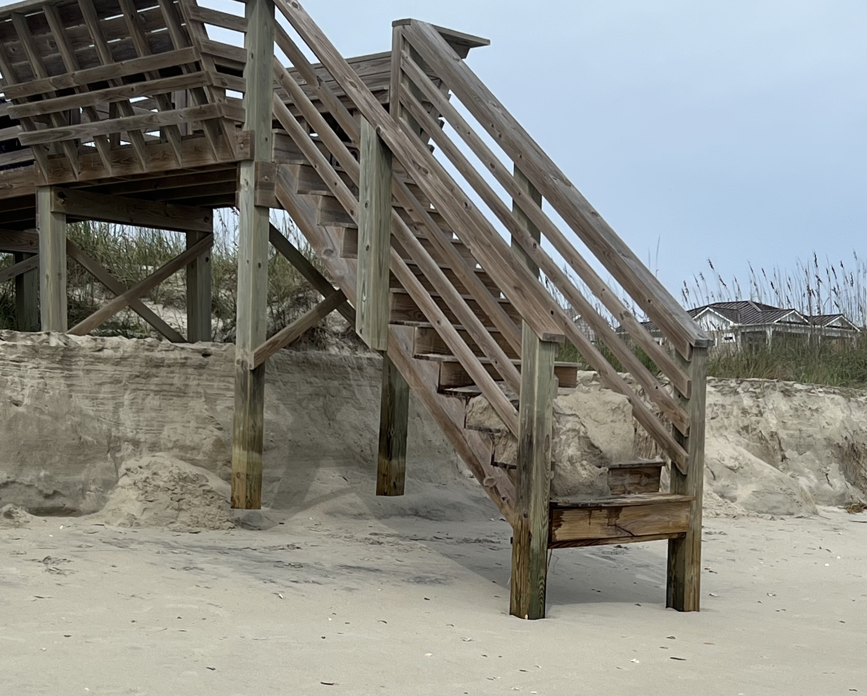 An offshore Nor’easter brought coastal flooding and beach erosion the night before. Overnight, the surf had swept away the beach underneath this boardwalk.